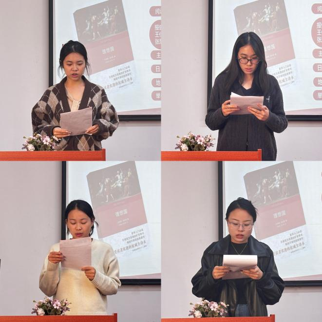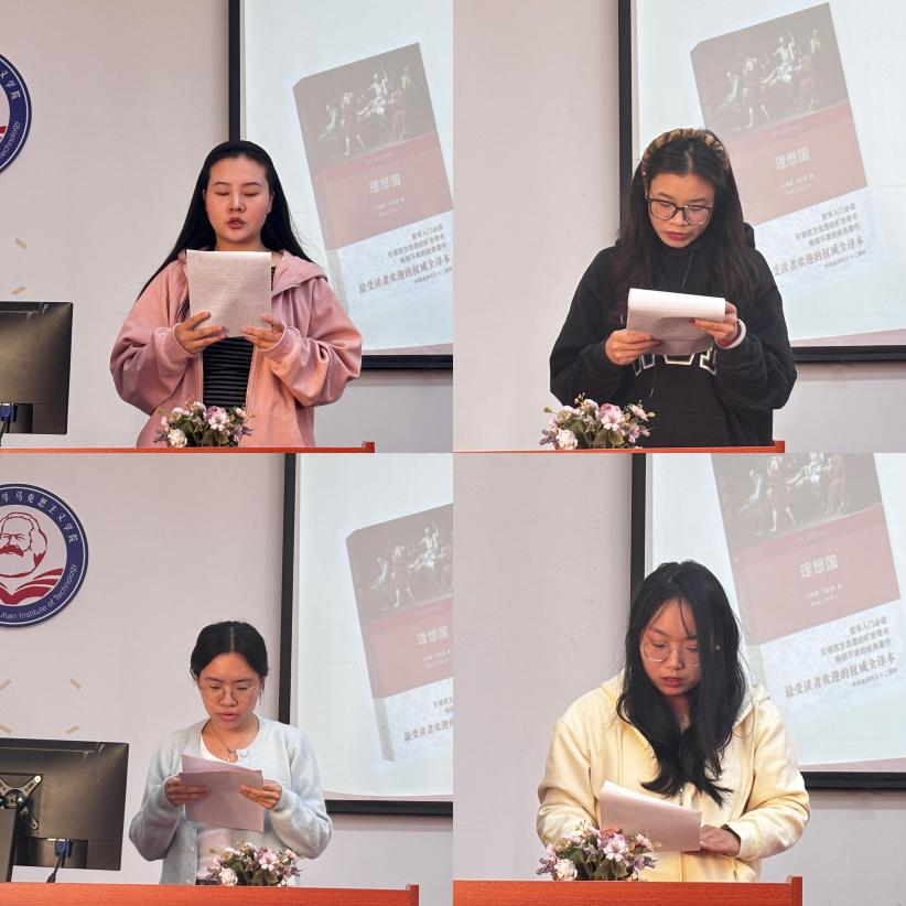 本网讯(通讯员 谢瑶、李诗佳)11月4号下午,我院第124期“博闻读书会”在马克思主义学院求是楼401教室顺利召开。本次读书会以“《理想国》的理想”为主题,围绕柏拉图的《理想国》展开讨论。本次读书会由李齐老师主持。参加此次读书会的14位研究生主讲人分别为24级郭可慧、张洋洋、欧一珂、史燕枰、李诗佳、王佳瑶、李思珑、武亚威、李素奕、吴晓悦、徐嘉靖、张思雨、徐鑫、董倩莉。院“博闻读书会”学术活动工作小组组织了此次读书会活动。