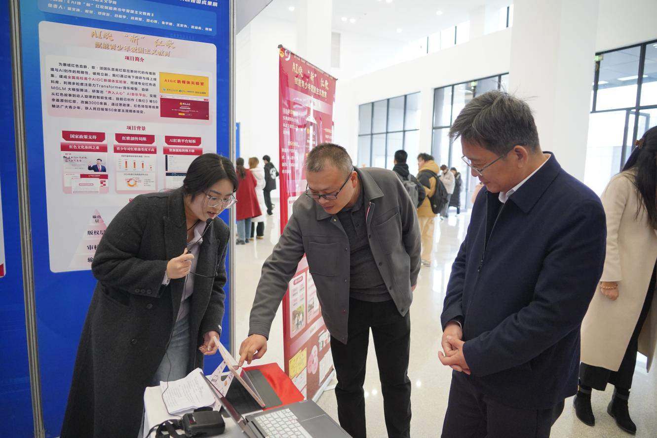 展会现场,《AI焕“新”红歌赋能青少年爱国主义教育》作为学校重点项目精彩亮相,该项目荣获第十九届“挑战杯”人工智能+专项赛全国特等奖。团队通过全国高校首个AIGC新媒体实验室,搭建专业红色语料库,利用多粒度注意力Transformer音乐模型,自研MGLM 大模型算法,搭建“声入人心”AI音乐平台。团队受教育部、中央网信办认可,并获国家级奖项30余项。受中央、省部级主流媒体宣传报道百余次,获多名专家支持认可。