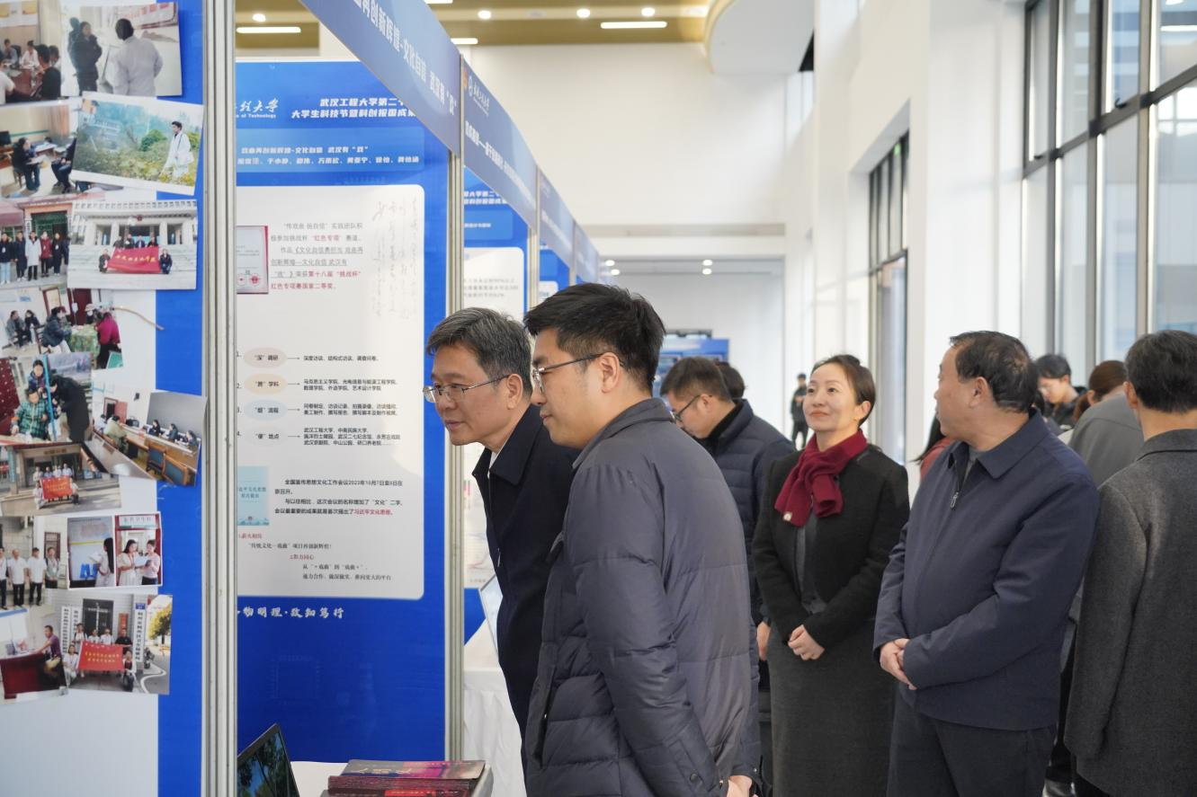 展会期间,校党委书记汪伟、校长张彦铎、校党委副书记李志旭等一行前往展区参观指导,来到马克思主义学院展台,认真聆听了四项参展项目的详细汇报,对项目呈现的创新理念、实践成效及育人价值给予高度赞同。