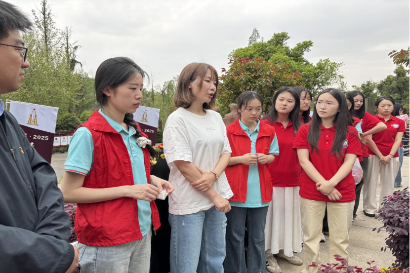本网讯(通讯员 盛文冰 汪喆伦 摄影 李诗佳)为深入贯彻习近平总书记关于传承红色基因、培育时代新人的重要指示精神,2025年4月7日下午,武汉工程大学马克思主义学院党委副书记蔡明广、团委书记汪喆伦及学院崔晋文副教授带领“红心向党”宣讲团成员赴九峰烈士陵园,开展“行走的思政课”主题教育实践活动。此次活动以祭扫献花、故事分享、实地研学为载体,将思政课堂延伸至革命圣地,引导师生在沉浸式体验中感悟红色精神,筑牢信仰之基。