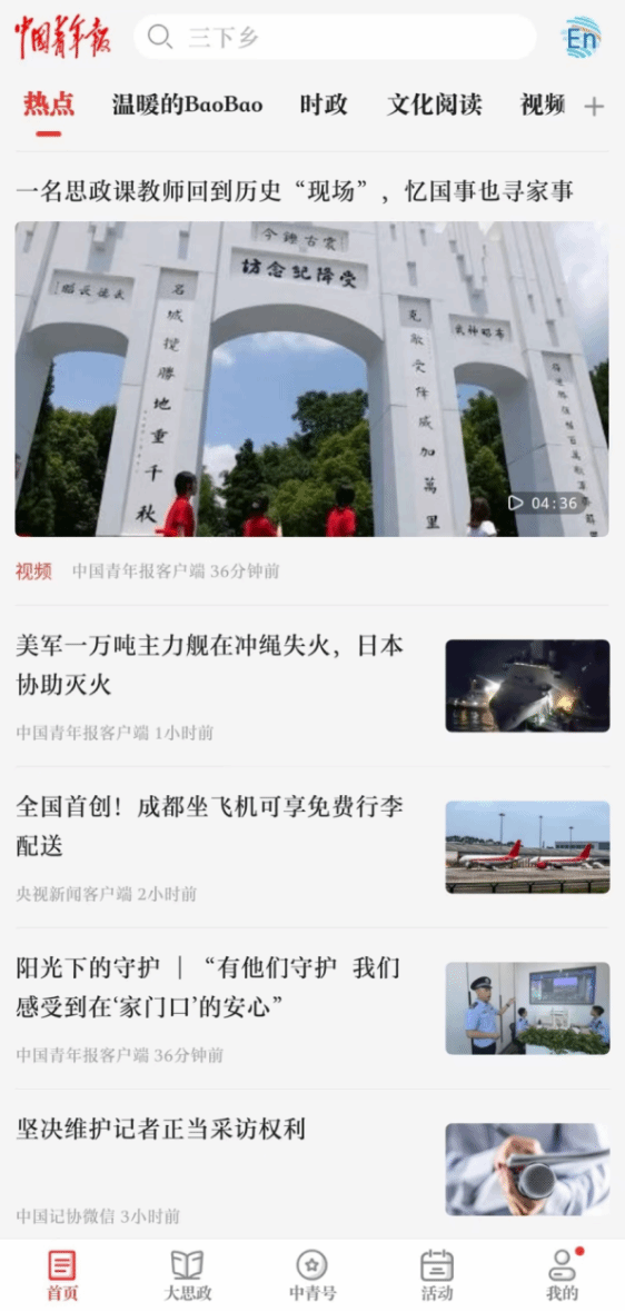 中青网客户端首屏报道