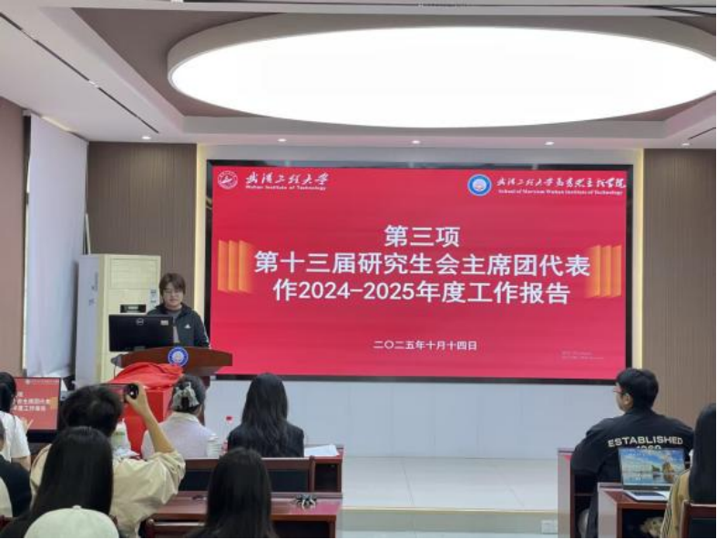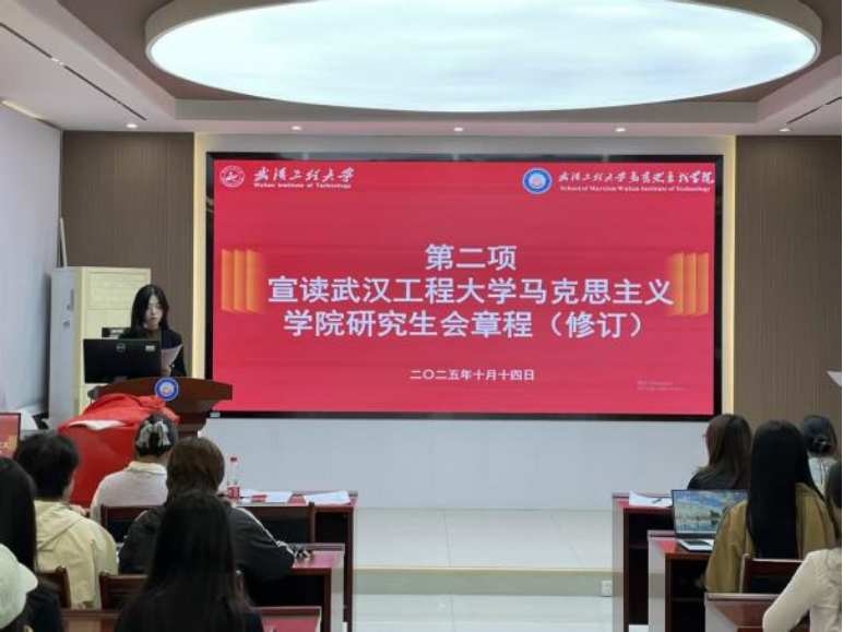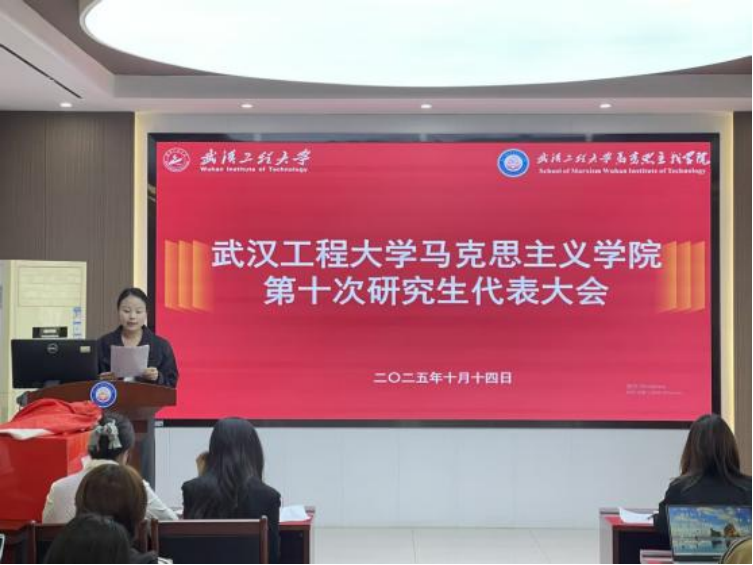 本网讯(通讯员 金敏星 张悦悦)10月14 日下午,武汉工程大学马克思主义学院第十届研究生代表大会在求是楼112报告厅举行。学院团委书记汪喆伦出席会议,2024级、2025级全体在校研究生参会,会议由学院团委副书记张思雨主持。本次大会以“筑牢信仰根基,践行服务宗旨,彰显马院学子使命担当”为主题,全面总结过往工作,科学规划未来发展,为学院研究生工作注入新动能。
