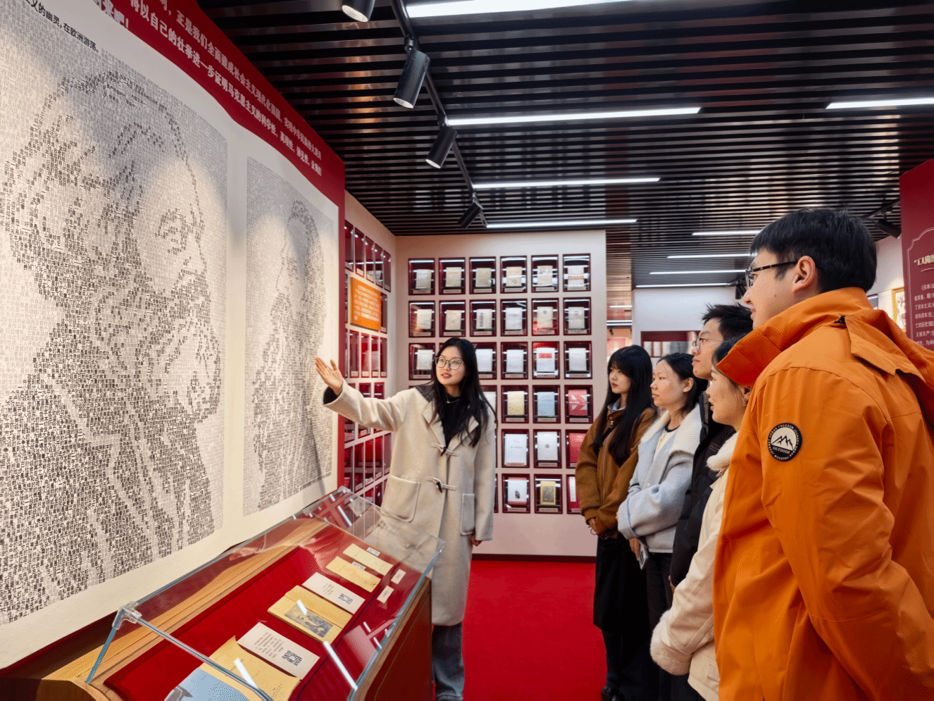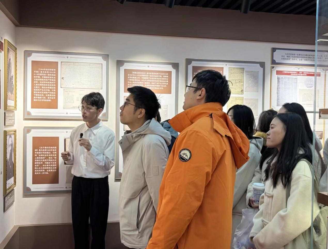 展馆中陈列的一本本泛黄典籍、一张张伟人照片、一幕幕历史场景,全面展现了中国共产党成立100多年来推进马克思主义文献收集、翻译、研究、宣传的奋斗历程和伟大成就。活动最后,全体师生在展馆前合影留念。