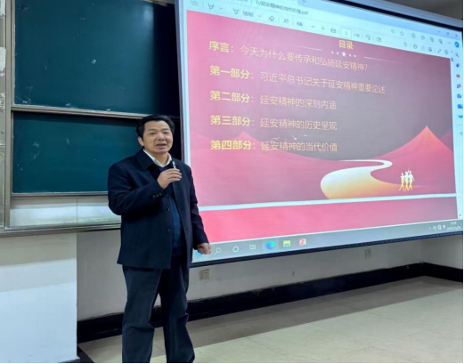 (通讯员 沙香羽)为深入学习贯彻习近平总书记关于弘扬党的光荣传统和优良作风的重要论述,深刻把握中国共产党人精神谱系的时代内涵,领会延安精神的精髓要义,我院于2025年11月25日下午成功举办《延安精神的当代价值——延安精神永放光彩》专题学习会。本次讲座由马克思主义学院院长曹胜亮教授主讲,学院部分教师及2025级研究生参加。