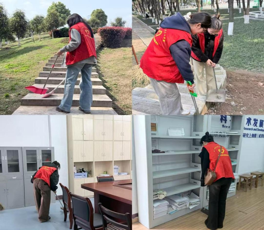 在学院团委统筹部署下,本次志愿服务坚持科学谋划、分区施策、精准发力,实现楼宇公共空间与户外生态区域全覆盖。志愿者们分为两组协同作战、高效推进:一组聚焦求是楼、博闻楼教研室、会议室、综合活动中心等室内场所,开展精细化清洁,清理积存杂物、擦拭公共设施、清扫楼道积尘、整治卫生死角,以严谨细致的作风守护教学科研空间的整洁有序;另一组前往马院后山开展环境综合整治,清理枯枝落叶、白色垃圾与杂草杂物,规整步道、消除盲区,以实际行动守护校园生态底色。大家分工明确、配合默契,用汗水擦亮校园面貌,以实干诠释志愿精神。