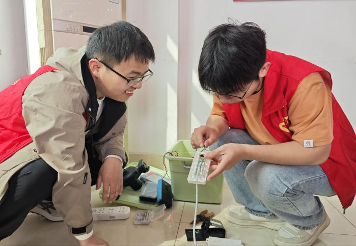 同期,电气信息学院、环境生态与生物工程学院志愿者协助开展用电科普、家电维修、黏土手工等便民服务,为活动增添了便民实效与童趣氛围。