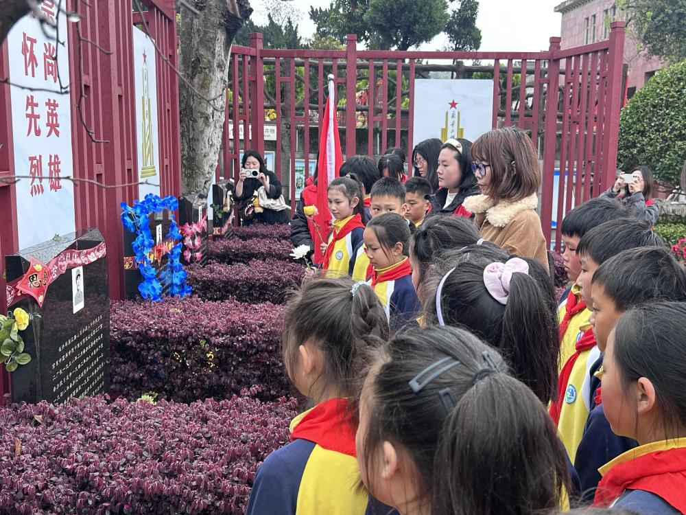 本网讯(通讯员 李诗佳)青山埋忠骨,江河记功勋。为深入推进学院“拾光计划”思政课成果展进一步丰富,深入推进大中小学思政课建设一体化,3月30日下午,由武汉工程大学马克思主义学院牵头,联合光谷第二小学举办的大中小学思政课一体化“清明祭英烈·心语寄忠魂”祭扫活动,在武汉市九峰山烈士陵园庄严举行。作为武汉工程大学马克思主义学院重点打造的思政育人品牌“拾光计划.身边的红色故事”系列活动之一,本次活动汇聚30余名学生代表及带队教师,在英烈长眠之地,共上一堂“行走的思政课”。