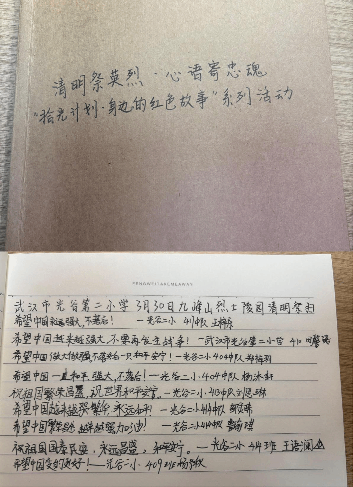 祭拜活动结束后,光谷二小的同学们纷纷拿出纸笔,认真写下此次清明祭扫的感悟。孩子们低头伏案,一笔一划写得格外认真,稚嫩的笔尖流淌出最真挚的情感,一字一句,皆是内心的触动;一言一语,尽显精神的洗礼,孩子们脸上认真的神情、笔下真诚的文字,无不印证着此次思政教育的圆满成功,英烈精神已然在孩子们心中种下了红色的种子,悄然生根发芽,也让 “拾光计划” 的红色育人力量,在一代又一代青少年心中传递延续。